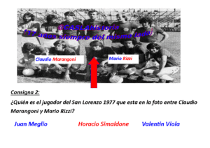 ¿Quién es el jugador del San Lorenzo 1977 que esta en la foto entre Claudio Marangoni y Mario Rizzi?